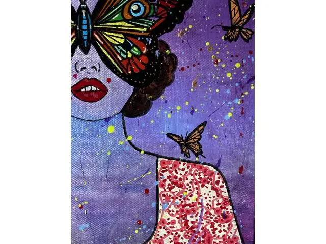 Search Tags by Artist acrylic, painting, original, unique, woman, girl, butterfly, butterflies, purple, red lips, patterned, surreal, surrealism, pop art