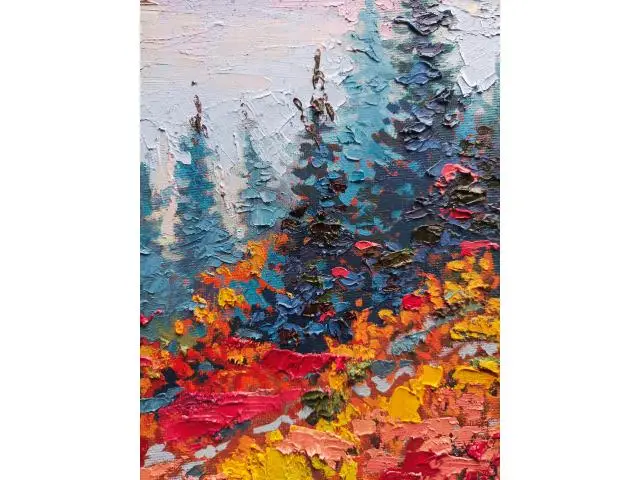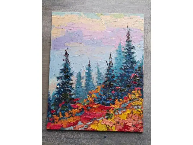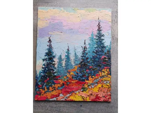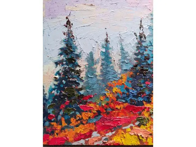 "Follow the Path" Oil on stretch canvas and custom framed. Size is 36.5"×24.5". Shipping price is separate. This lovely birch tree scene takes you down a path of the unknown. With shimmering mountains in the background and the feel of the sun on your skin. This would look great over a fireplace or in a diningroom for all to enjoy.