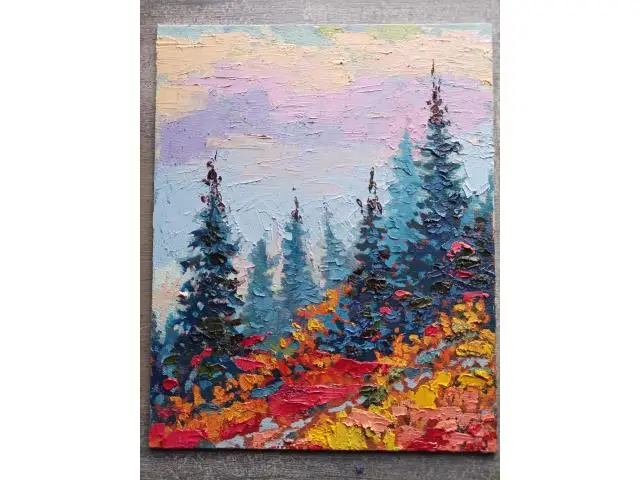 "Fetching a tree" Oil on studio canvas. 12"×12". Shipping price is separate. This cozy winter scene captures the heart of the holidays — a red pickup truck carrying home a fresh Christmas tree, parked beside a rustic barn and dusted with new-fallen snow. The painting has a timeless, nostalgic feel, reminding us of simple traditions and the joy of the season....